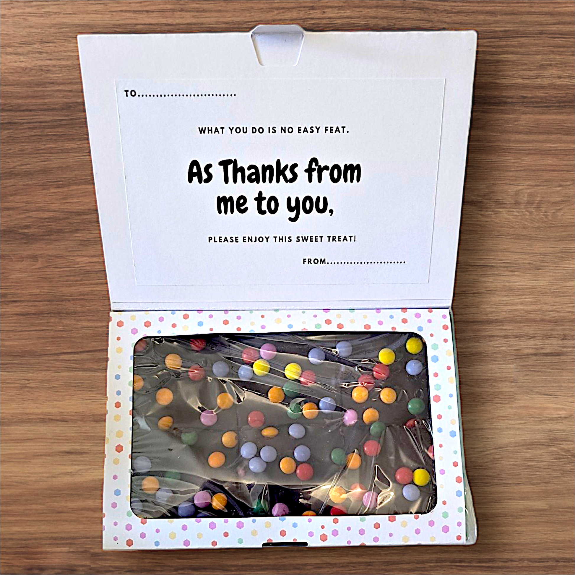 Choose your message, chocolate chip and toppings and you can write in the cards yourself or add a note telling us what to write on your behalf.